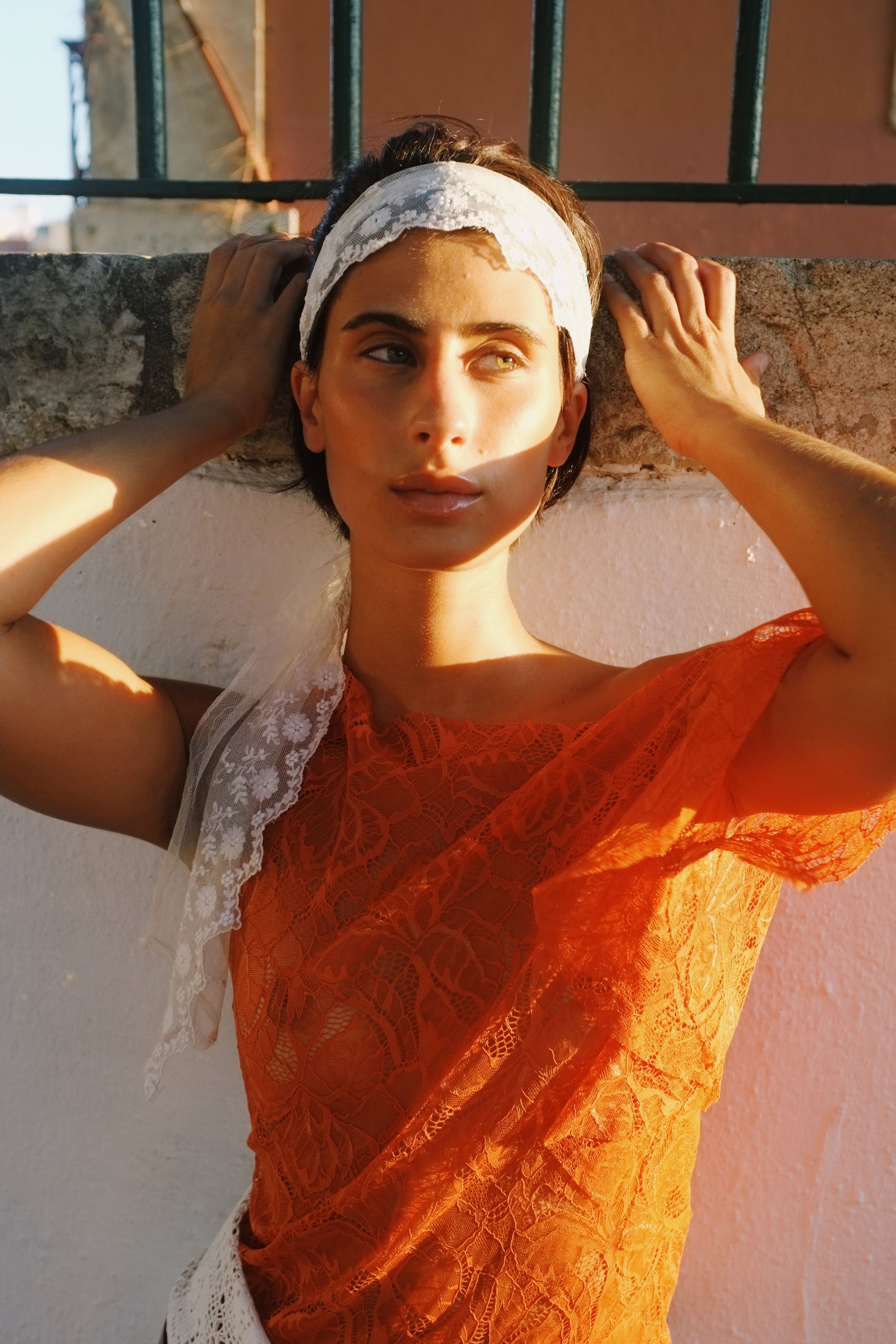 Deadstock chantilly lace top with flounce frill sleeve.